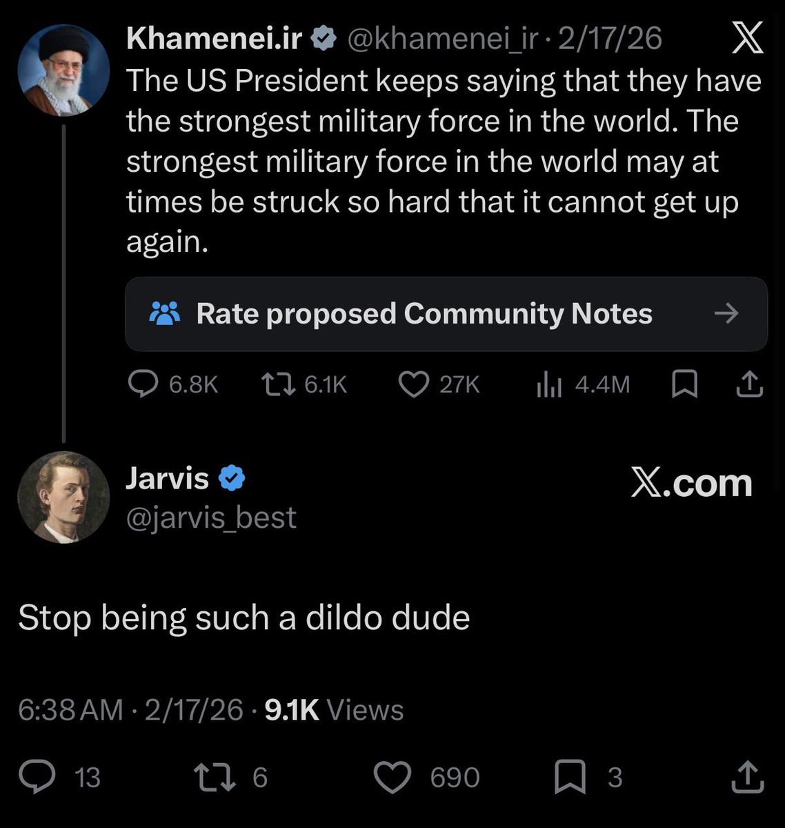 推 MuadDib : 給伊朗每兩天換一批高層 看哪一批願意妥協? 03/01 09:08
