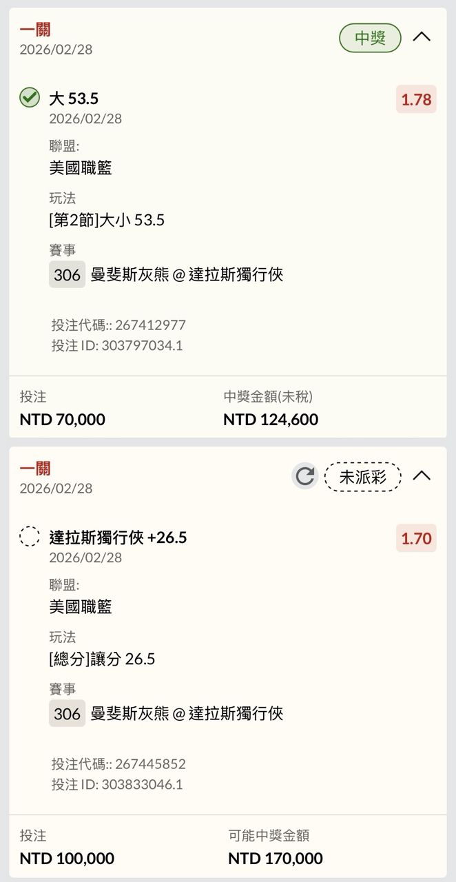 推 Wayne121: 222.5大1.72收 終於止敗 101.3.149.192 02/28 11:49
