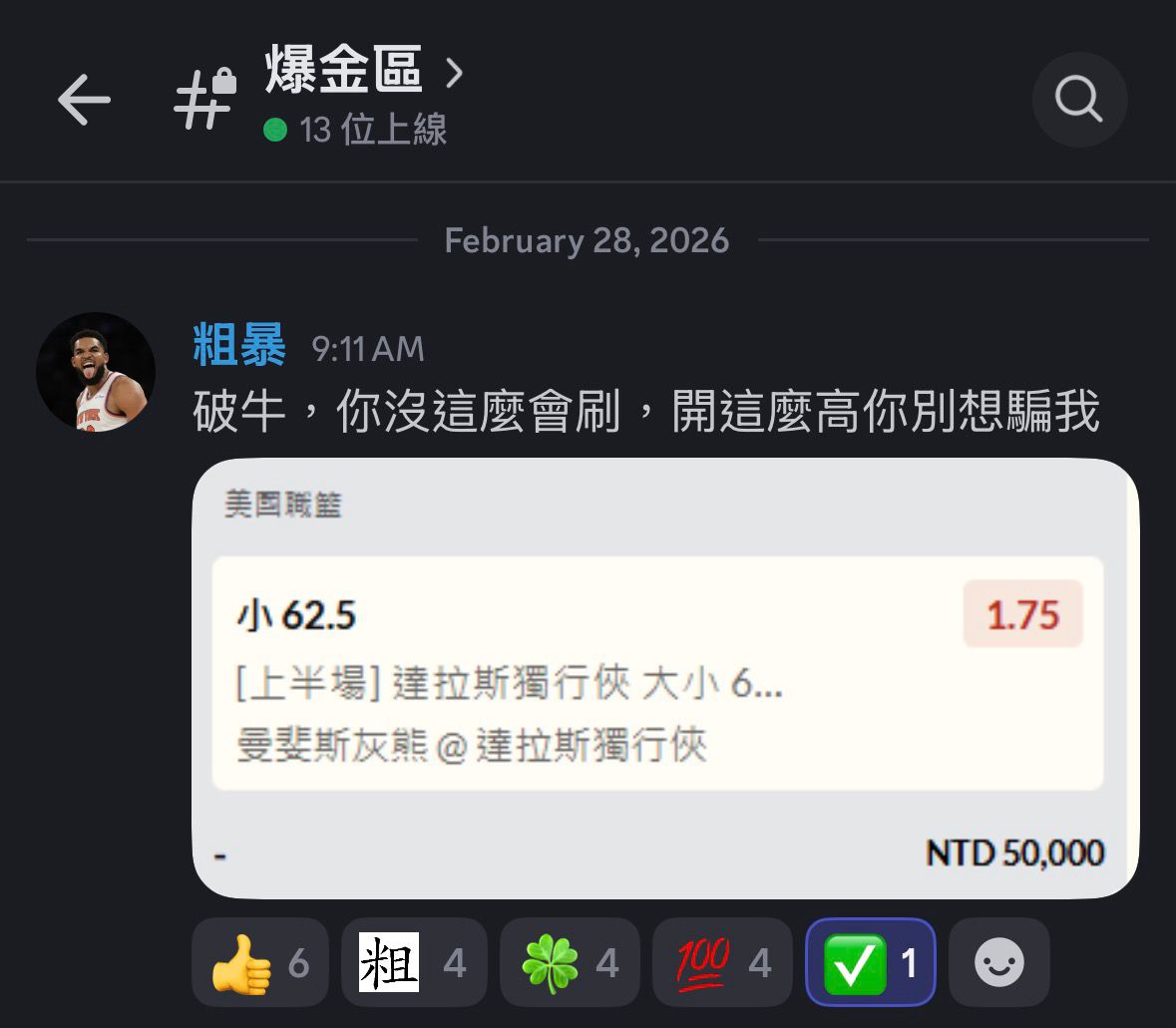 → luckywind: 總分240.5 半場122.5 獨行俠-4.5 1.72 125.230.16.159 02/28 09:25