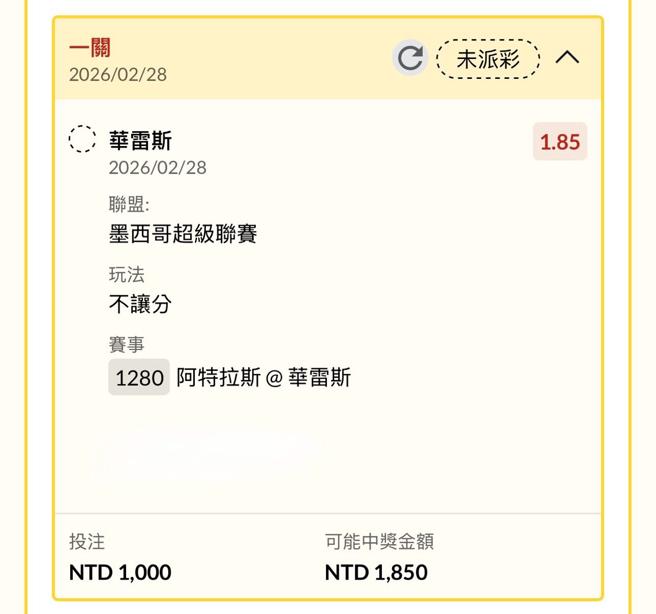 -- ※ 發信站: 批踢踢實業坊(ptt.cc), 來自: 36.238.212.221 (臺灣) ※ 文章網址: https://www.ptt.cc/bbs/SportLottery/M.1772246879.A.4E5.html