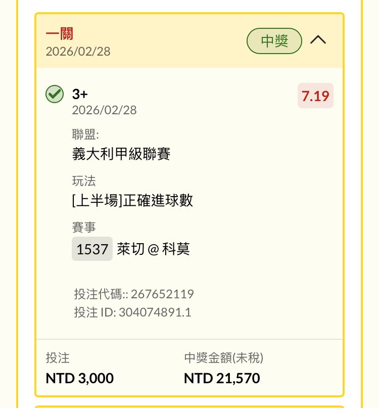 推 alexhsu0909: 正確進球數4 上半就達標 要怎麼套 111.71.212.160 02/28 22:55
