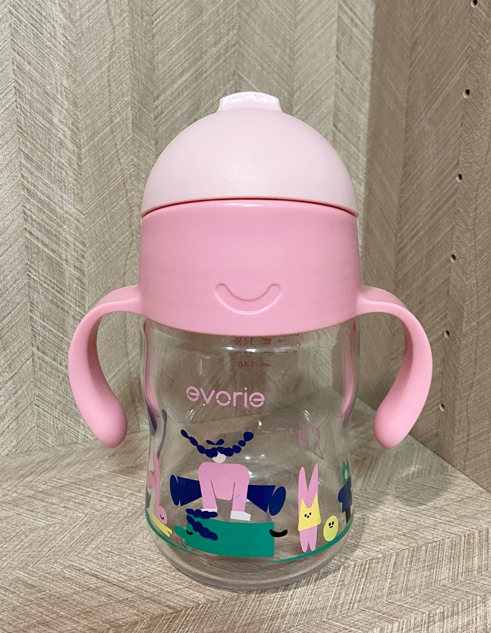 愛得利evorie Tritan 360度防漏微笑學習水杯200ml+ 全新替換吸管組+ 全新吸嘴x1