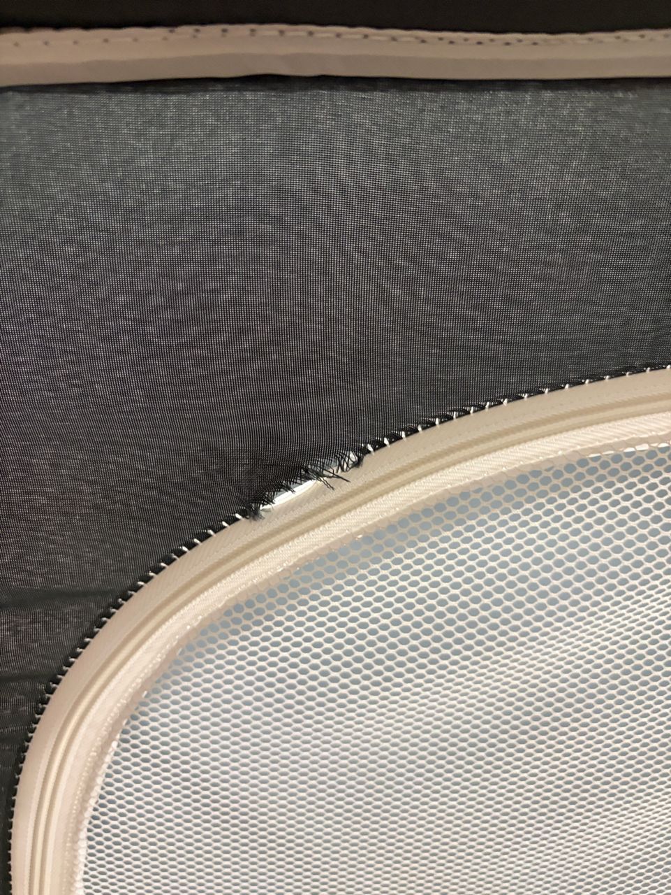 拉鍊邊緣破洞瑕疵,不影響使用