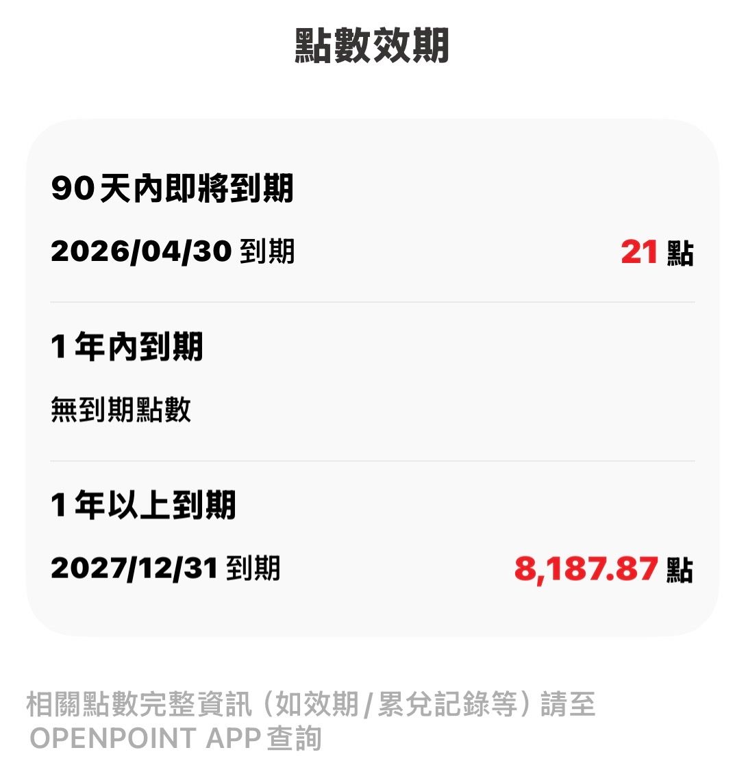 商品名稱:openpoint 8208點 交易地區:全國 商品價格:8208元 (1點:1元 可散賣 500起) 新舊狀況:如下圖 交易方式:Linepay.街口.轉帳(轉帳後轉點) 聯絡方式:站內信 其他說明:售出不退 https://i.mopix.cc/iVdLby.jpg